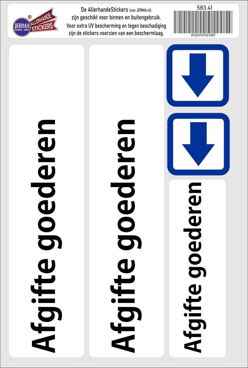 Afgifte goederen bewegwijzering sticker set. (583.41)