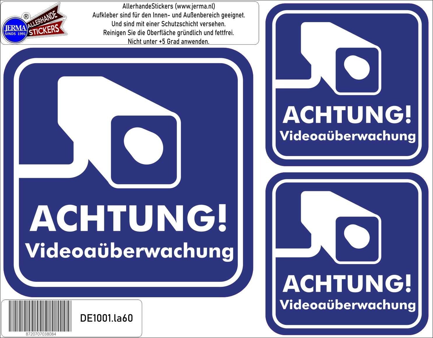 In België moet de sticker een afmeting hebben van minimaal 0,15 x 0,10 meter en moet er vermeld staan: "Camerabewaking – Wet van 21 maart 2007".