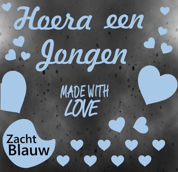 "EEN JONGEN Made with love" Kondig de geboorte van jullie zoon aan met deze prachtige raamsticker! In de kleur zachtblauw