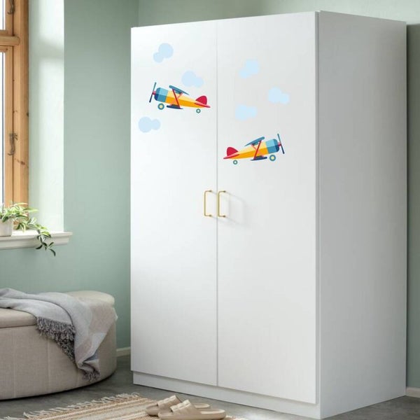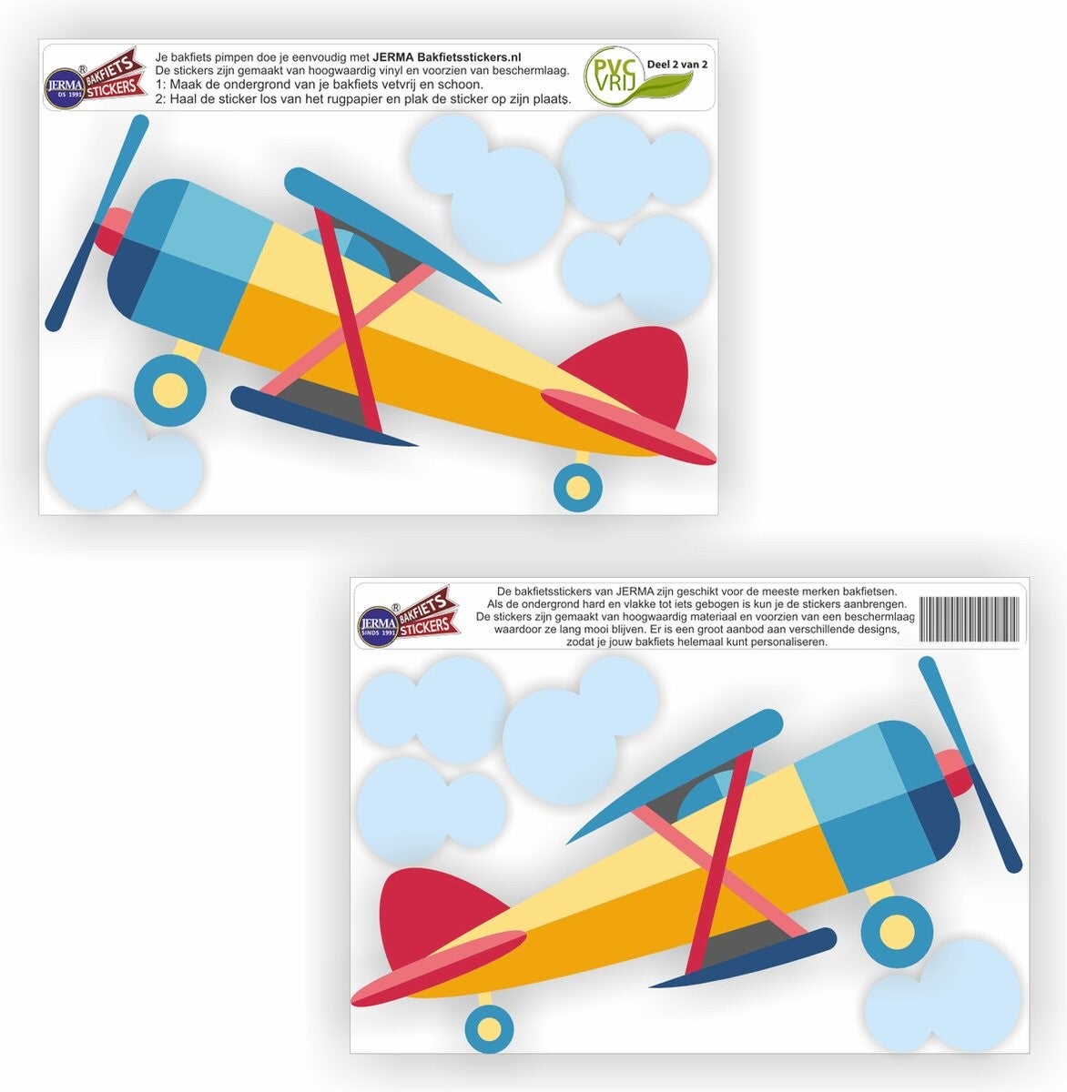 De afmeting van het vliegtuig is ± 30x13 cm. De set bestaat uit in totaal 10 decoratiestickers.