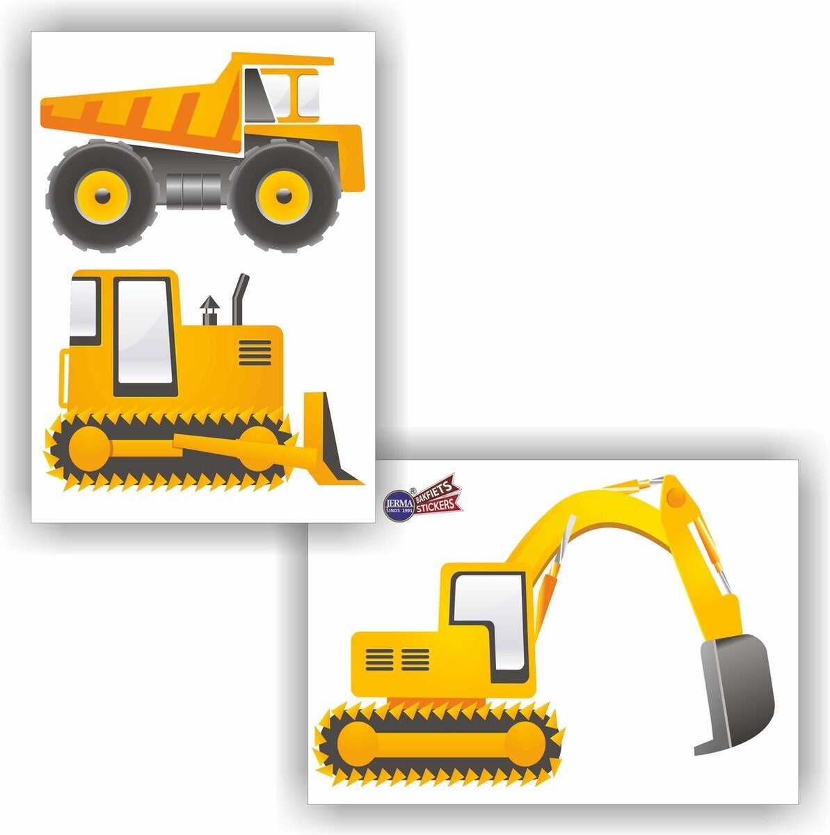 Bouwmachines-stickerset met graafmachine, bulldozer en natuurlijk de kiepwagen.