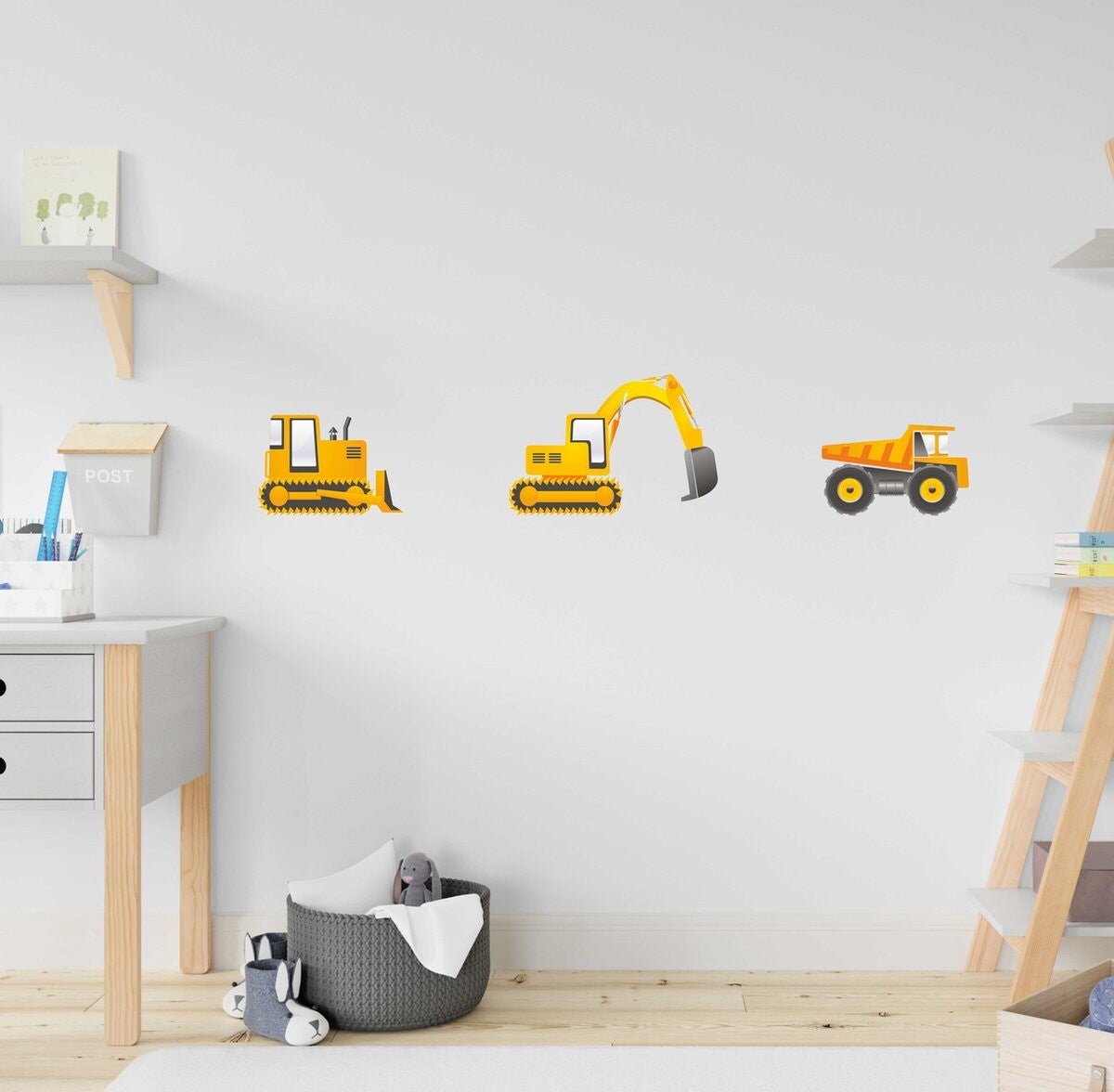 Graafmachine, bulldozer en kiepwagen raam-, meubel stickers (004.01)