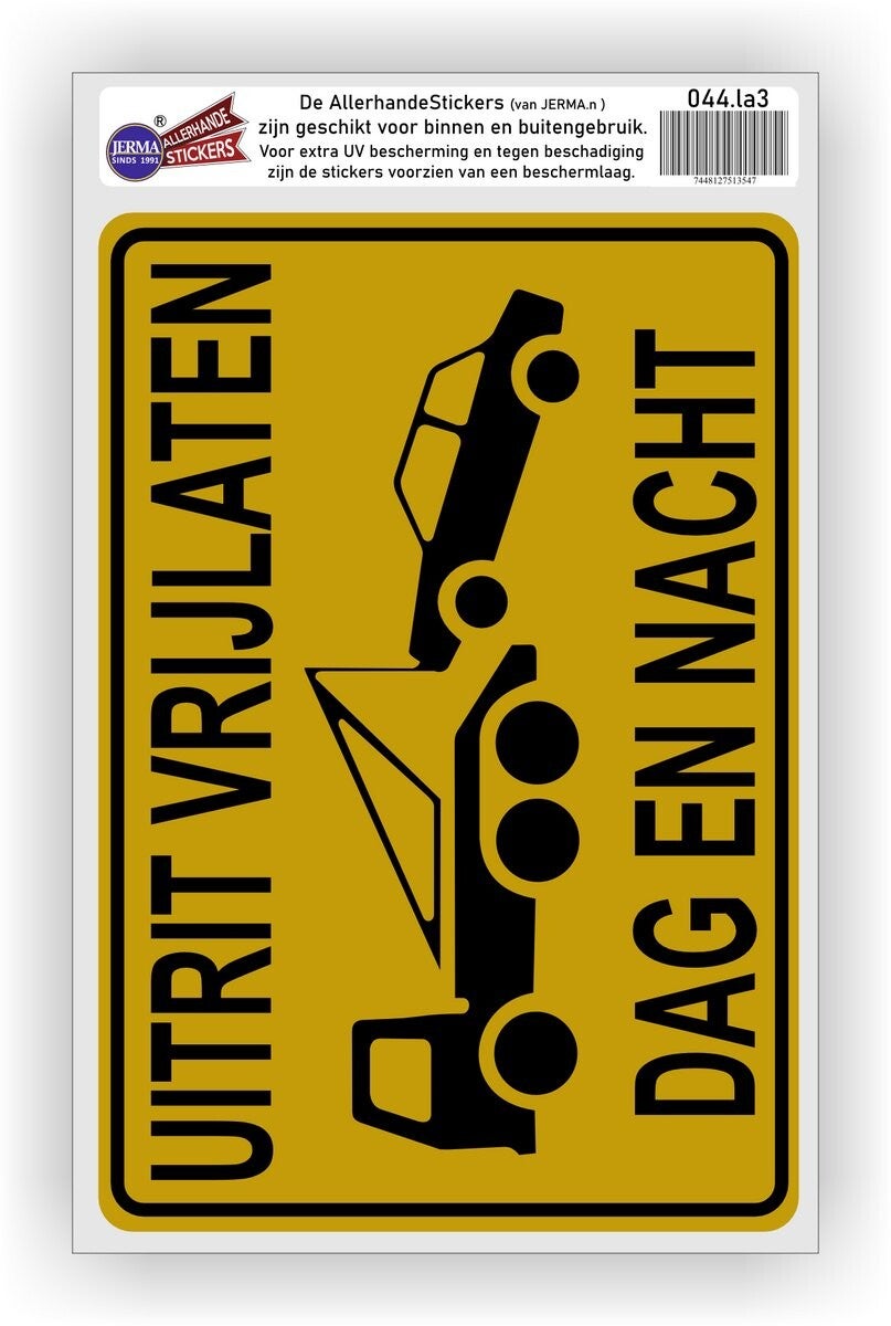 Uitrit Vrijlaten – Wegsleepsticker (24 x 17 cm) | Weersbestendig vinyl met Beschermlaag