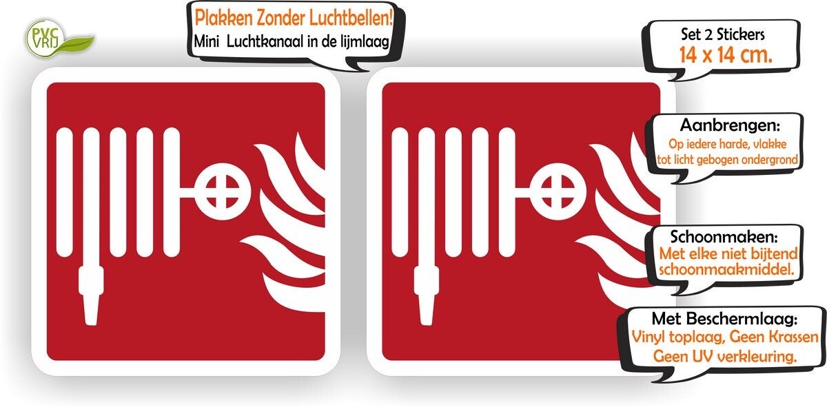 Randveiligheidstickers, veiligheidspictogram brandslang, brandpreventiesticker