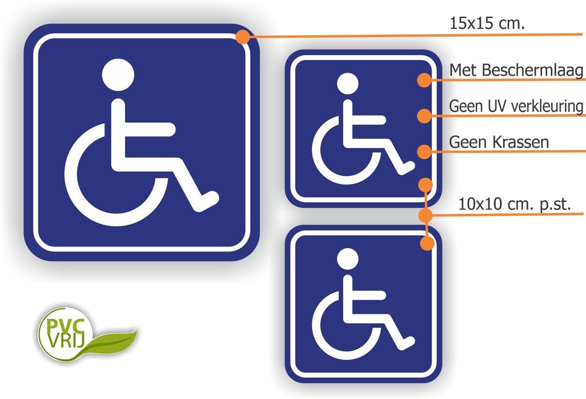 Maak zichtbaar dat uw gebouw of ruimte rolstoeltoegankelijk is met deze hoogwaardige stickerset. Ideaal voor bedrijven, openbare ruimtes, winkels of evenementenlocaties.
