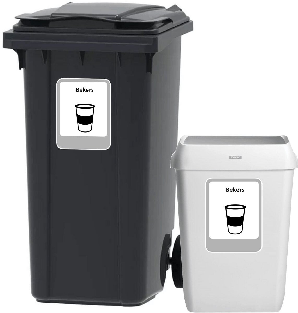 Duidelijke communicatie: herkenbaar pictogram en tekst “Plastic drinkbekers” zorgen ervoor dat gebruikers het afval correct scheiden.
