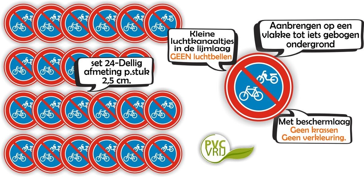 Voorkom overlast van verkeerd geparkeerde fietsen en brommers met deze set van 24 hoogwaardige verbodsstickers.