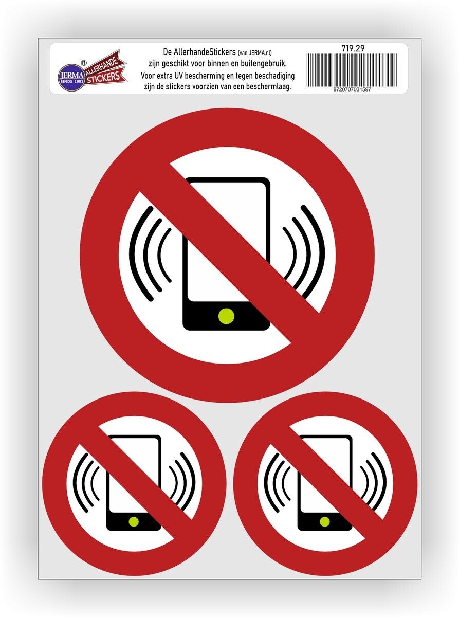 Met deze gsm-telefoon uit de sticker-set van 3 stuks heeft u altijd een passende maat om telefoongebruik te verbieden, waar u dat ook nodig heeft.