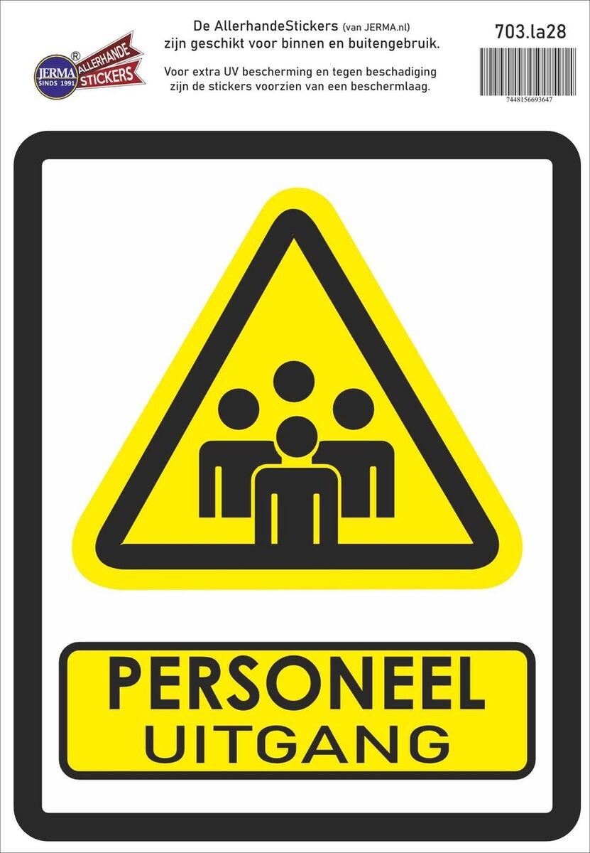 Deze deursticker is bedoeld om personeelsuitgang aan te geven.