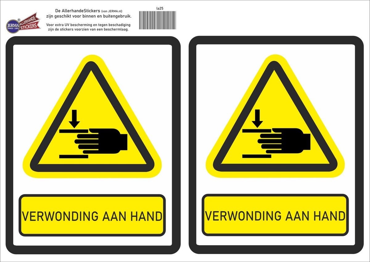 Verwonding aan hand waarschuwing stickers set (655.27)
