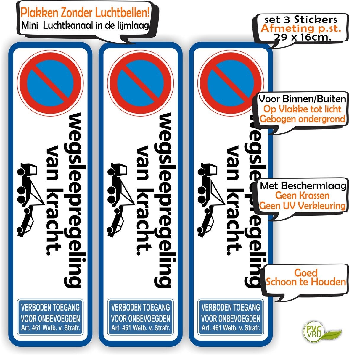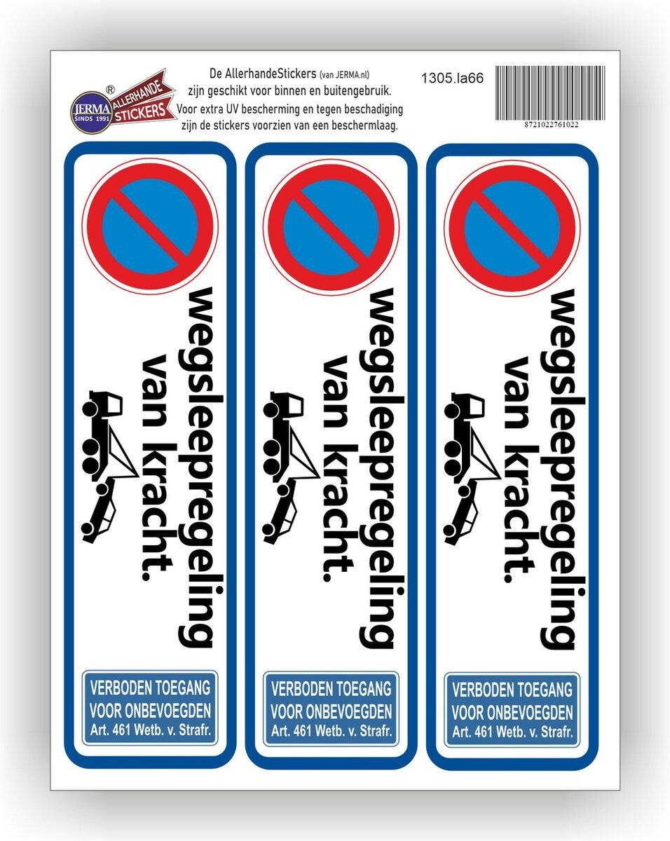 Wegsleepregeling – verkeersbord sticker set 3 st