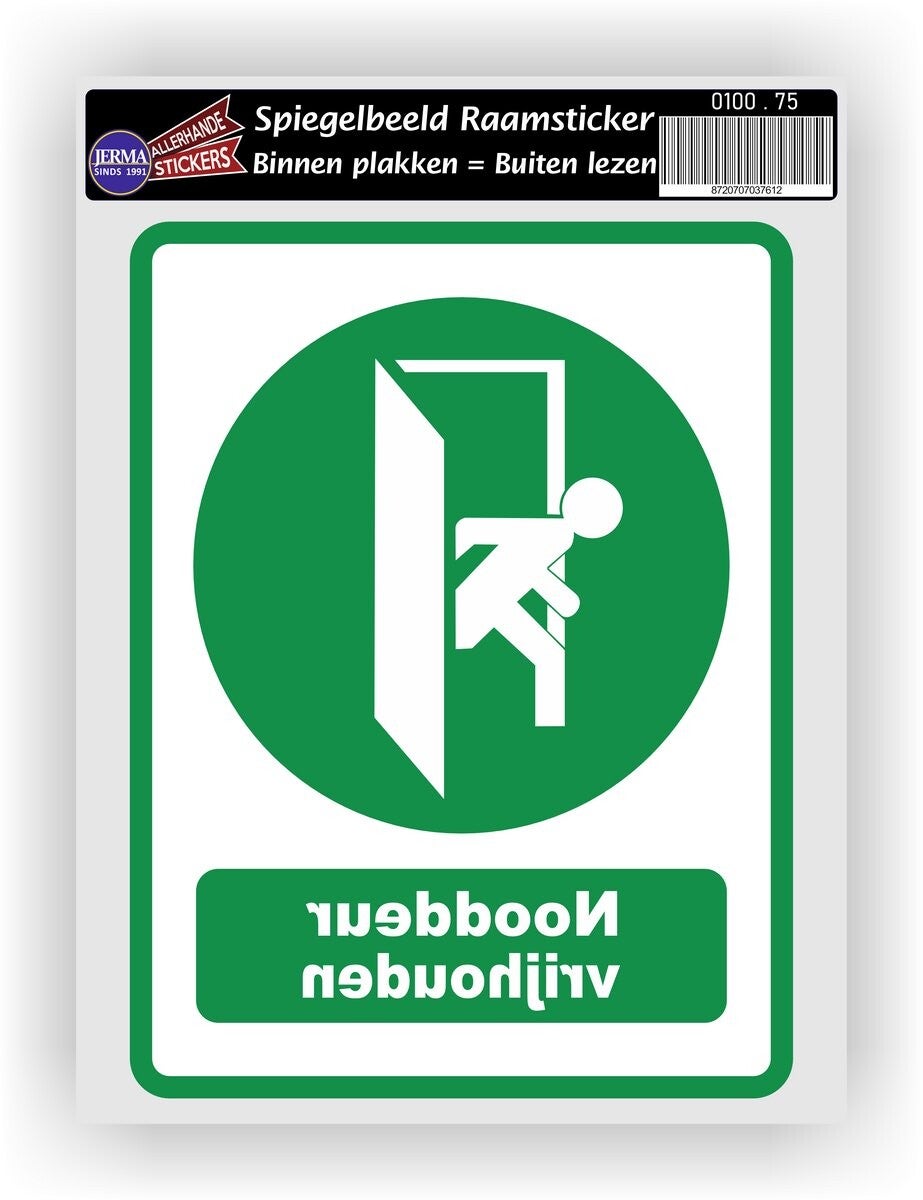Nooduitgang spiegelbeeld raamsticker (sp.100.75)